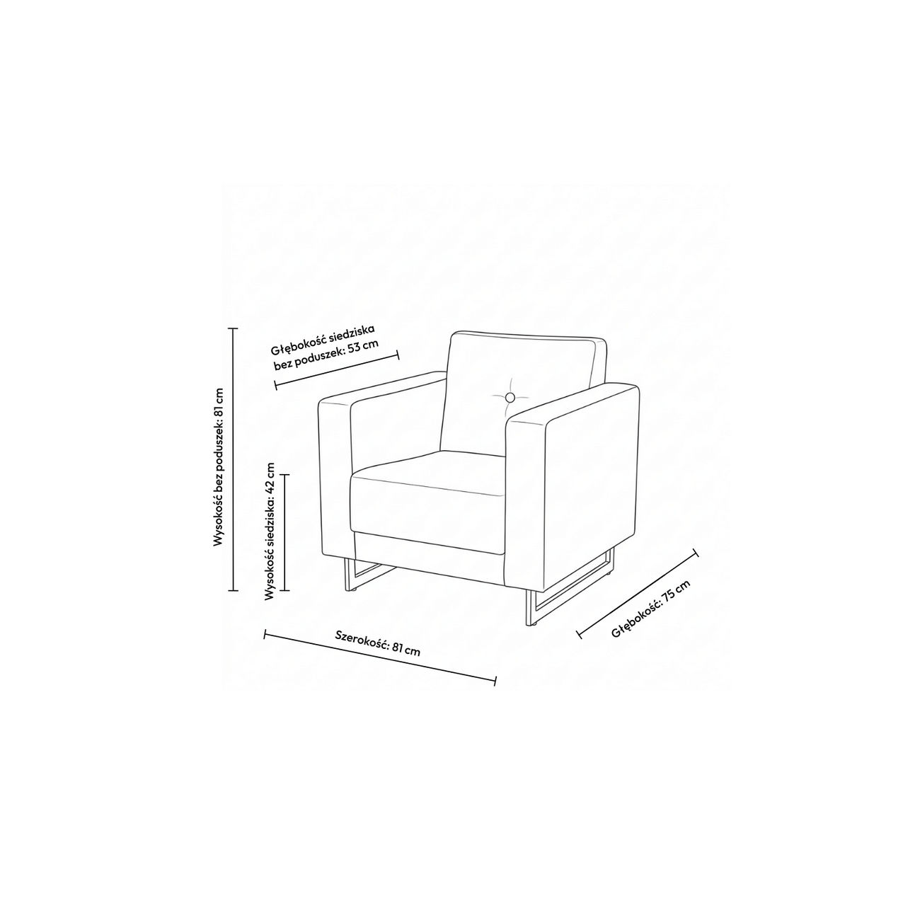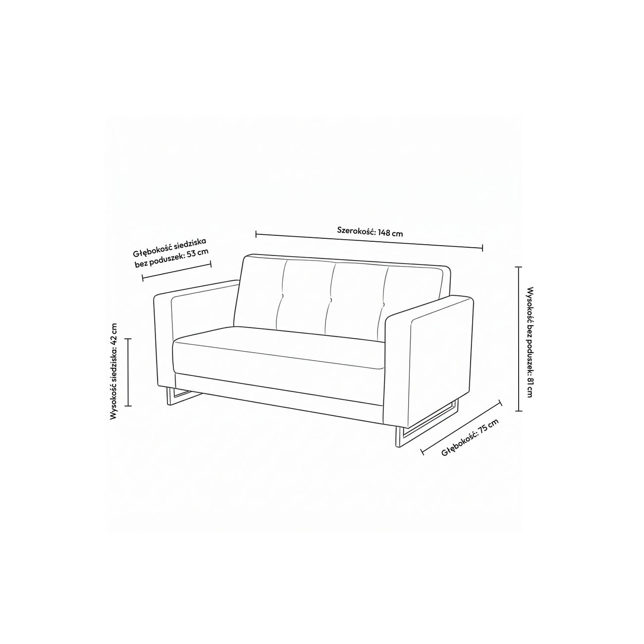 Wysokość bez poduszek: 81 cm