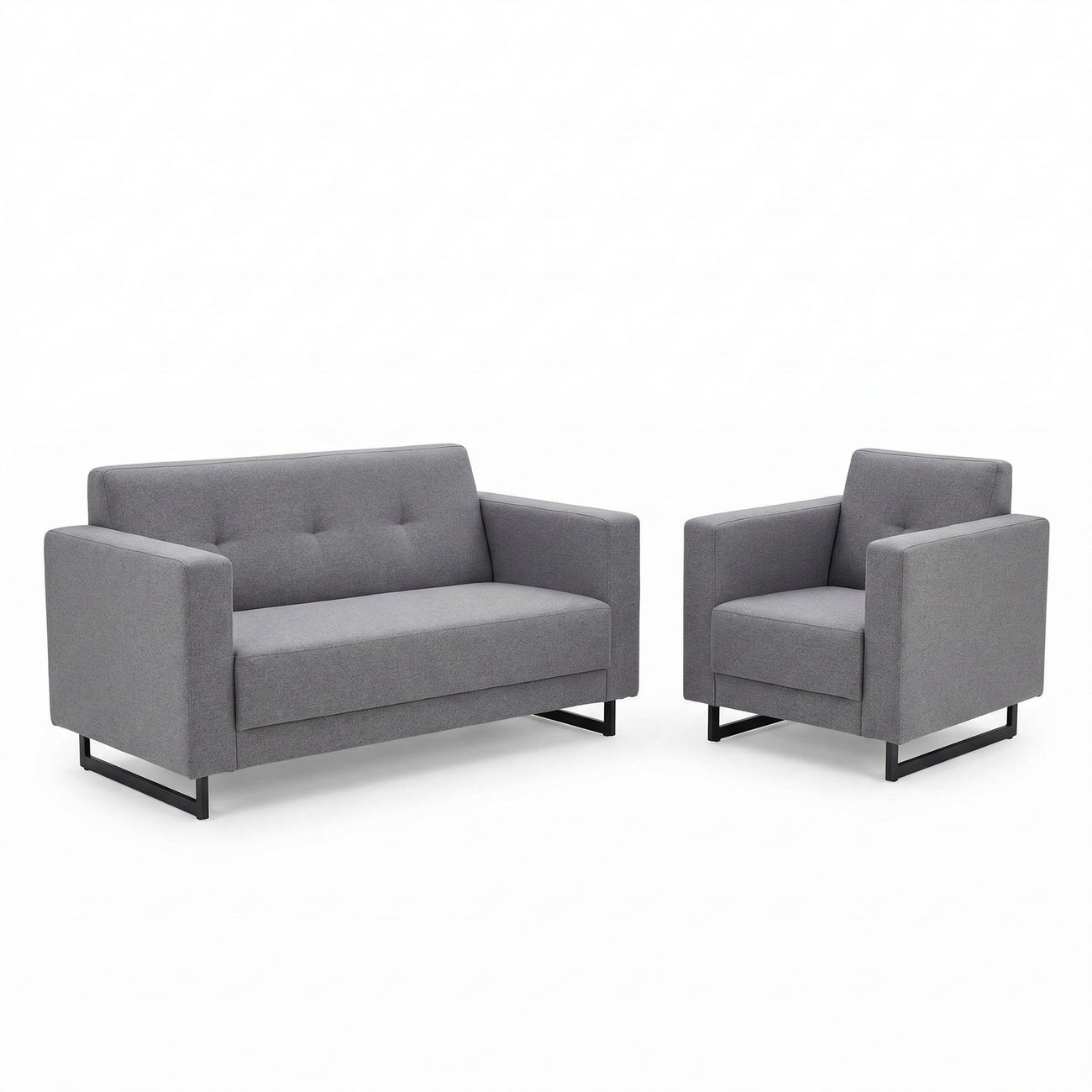 Sofa GENEVE prezentuje się bardzo estetycznie na tle zielonego ogrodu. Jasnoszare obicie wprowadza elegancki, neutralny akcent, który idealnie komponuje się z naturalnym otoczeniem. Subtelne pikowanie na oparciu dodaje sofie lekkości i charakteru. Połączenie z nowoczesnym fotelem z tej samej kolekcji oraz drewnianym stolikiem tworzy harmonijną strefę relaksu idealną na spotkania towarzyskie lub wypoczynek we dwoje.